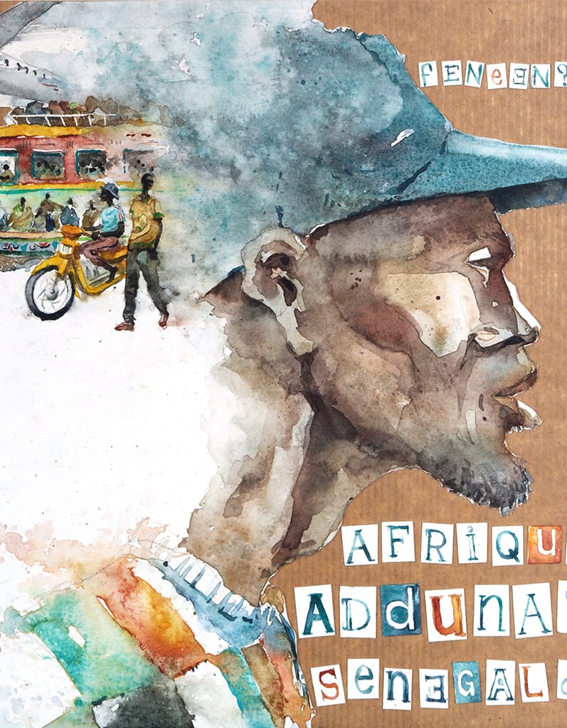 2025. Illustration de la pochette d’une série radio qui plonge au cœur des réalités migratoires vécues au Sénégal.